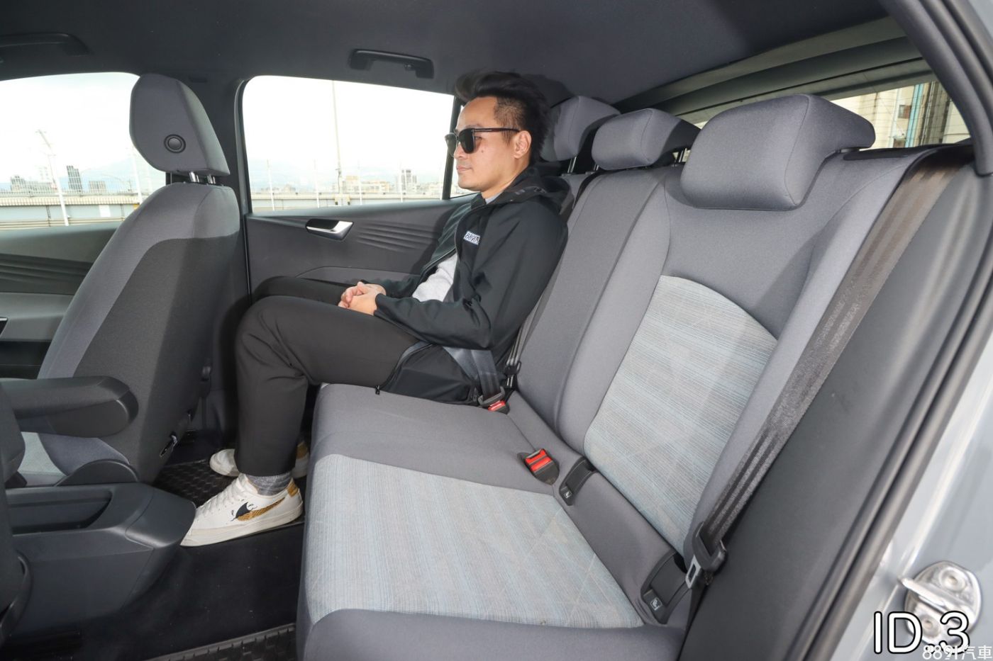 ID.3雖然後座空間小,但較高的後座椅面設定,大腿較不容易懸空,支撐性較好,再來是門檻高度低、開門角度大,後門開口造型也不容易打到頭,設計上更有利於乘客上下車。