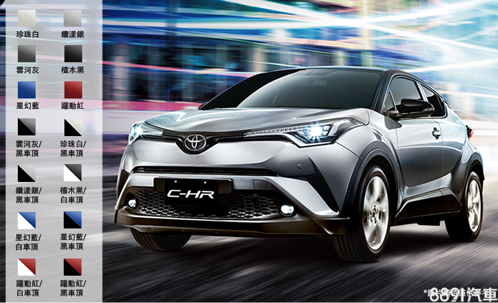 見到C-HR實車,渾身散發出的動感氣息,一時有點難與豐田這個廠牌產生連結,亦給人一種「良好的改裝素材」的聯想,雖仍帶有家族化特徵,但確實突破國內在路上看到的豐田車款之既定印象,以國內目前提供的六種車色(珍珠白、鑽樣銀、雲河灰、檀木黑、躍動紅和星幻藍)來說,私心認為躍動紅搭配黑色車頂更能將其律動感發揮(豪華型與尊爵AWD車型均可加價1萬,選擇車身與車頂雙色塗裝)。
