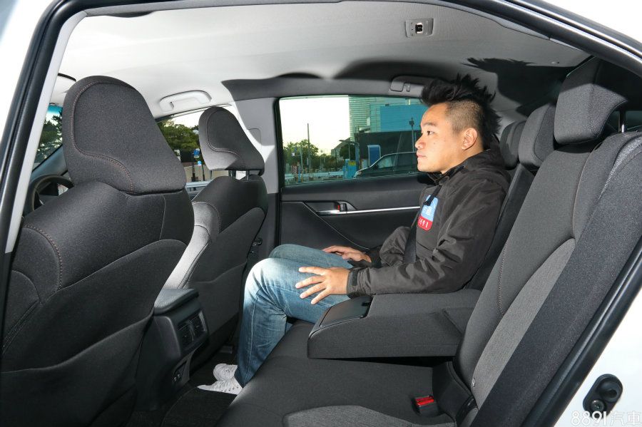 Camry後座空間表現向來出色,新車軸距拉長5公分,車身也寬一點,讓乘坐空間又加大些許,174cm成人入座,可清楚看出頭部、膝部空間都還相當充裕,同時椅背角度也設定理想,提供舒適的乘坐角度。