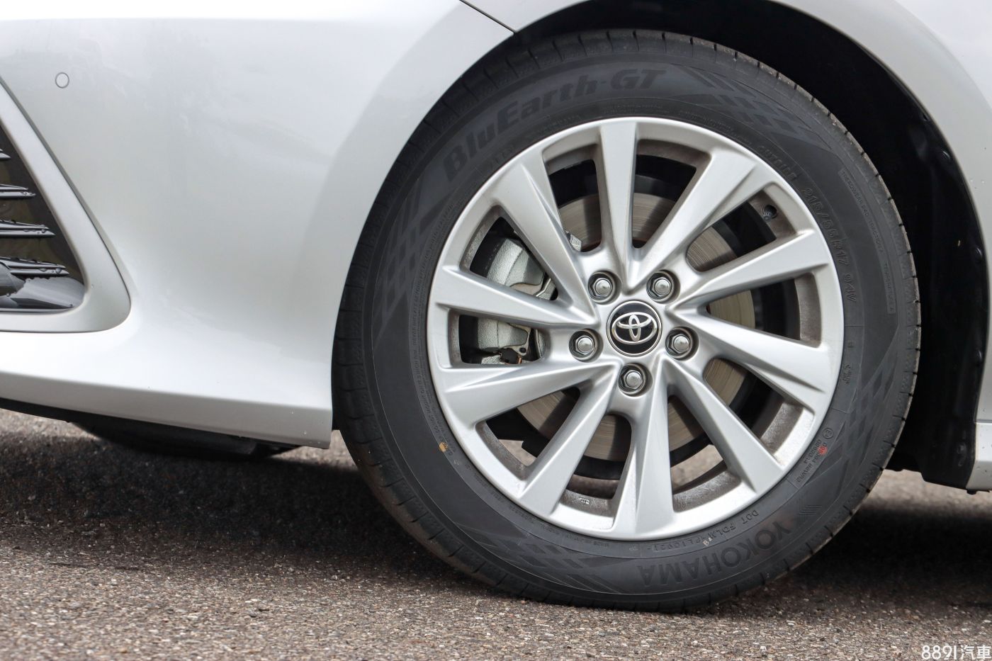 新設計的17吋鋁圈較先前多一些變化,但依舊是低調樸素風格,搭配215/55R17的橫濱Blue Earth-GT AE51,訴求節能和靜肅性,符合Camry的車格定位。