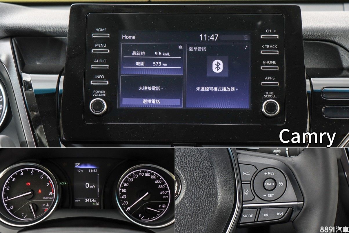 Camry汽油尊爵配置7吋觸控資訊系統,尺碼和小改款前相同,但多了Apple CarPlay和Android連接功能。儀錶為傳統雙環類比型式,中央資訊幕尺寸為4.2吋,設計與資訊豐富度一般,沒有特別之處。升級TSS 2.0是小改款一大重點,加入全速域ACC與自動煞停功能,能達成大家目前聽過的Level 2半自動駕駛等級,這部分和RAV4是同樣水準。