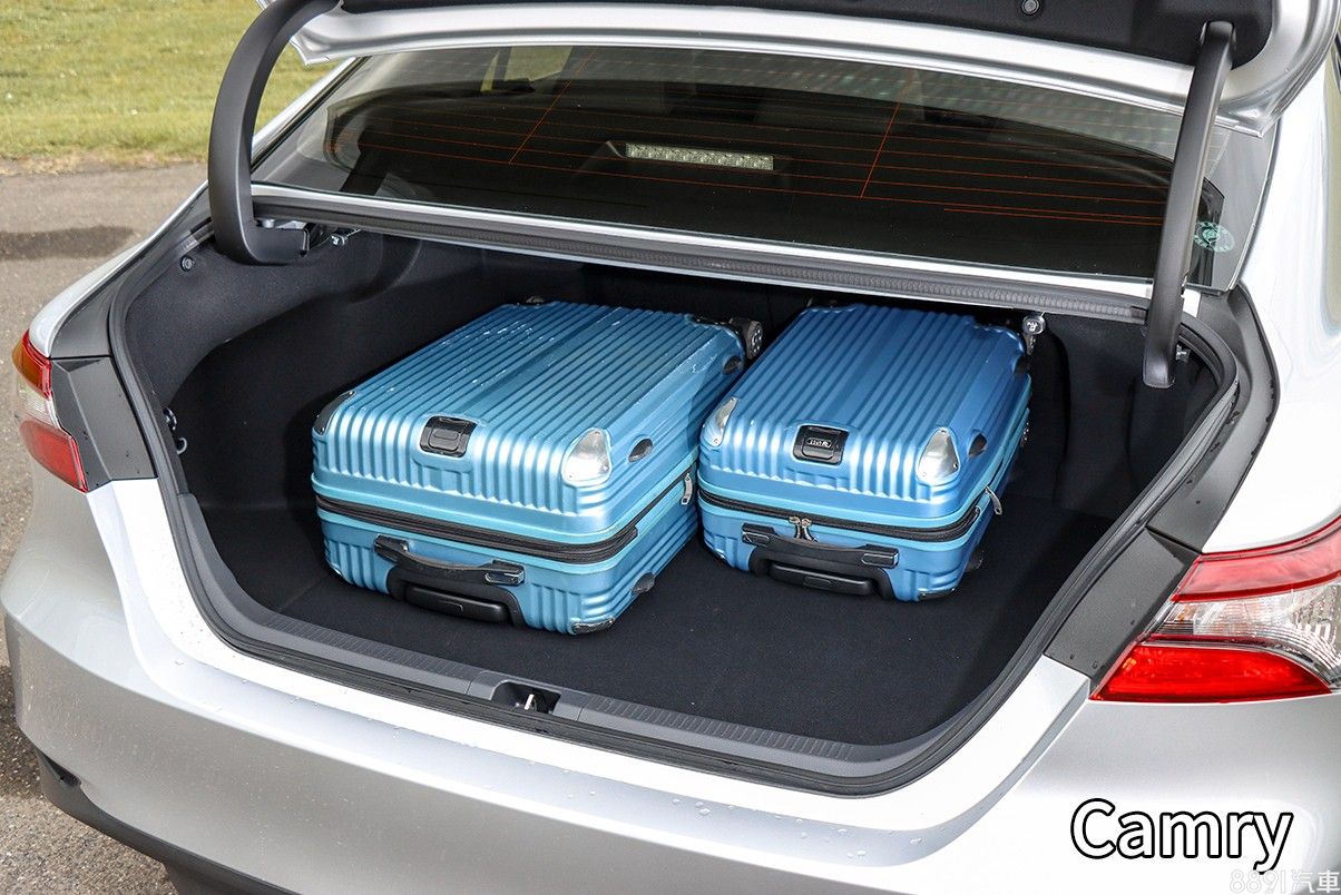 實際放上26吋及22吋的行李箱,Camry憑藉縱深優勢,收納沒問題,尾廂開口上緣還設置快速傾倒拉桿,增加操作上的便利性。不過,兩只行李箱放上RAV4,更是充裕到有剩,表現可說是贏得毫無懸念。