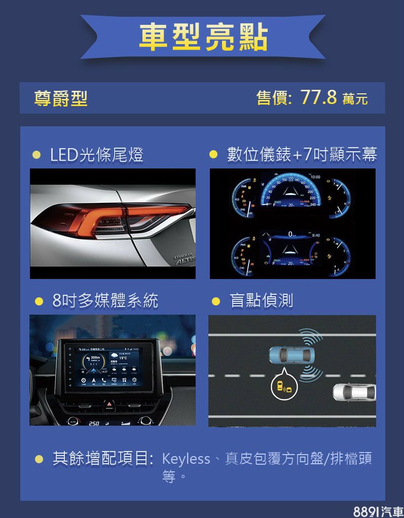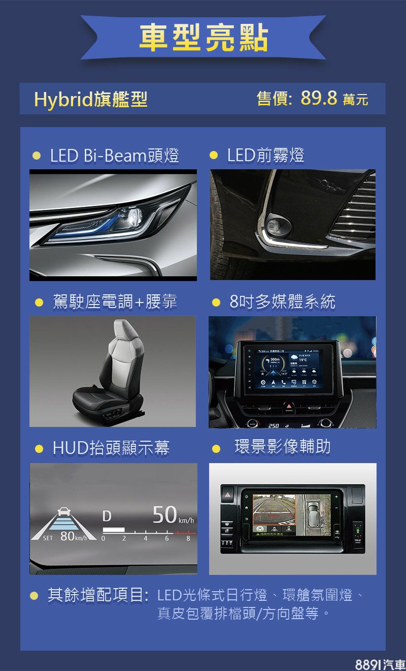 新款Altis一改過去給人在安全配備上較為「陽春」的印象,全車系標配TSS 2.0主動安全系統以及7氣囊,加上油電版本的推出,確實讓人耳目一新,新車在配備編成與選配項目部分,究竟如何?8891新車帶你輕鬆掌握所有細節!