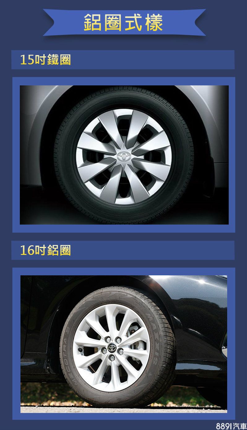 全車系除了入門的汽油經典版搭載15吋鐵圈外,其餘車型皆為16吋10輻式鋁圈,配胎部分,目前我們也看到瑪吉斯Mecotra 3與普利司通Ecopia EP150不同搭配,都屬節能為主要訴求的輪胎,此番配置用在Altis上並不意外,因為「國民車」要的是節能和經濟啊!