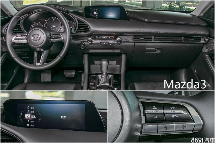 Mazda3在配備豐富度不及Focus,但論質感和設計感都無疑是同場最佳,能清楚感受到高級化作為。8.8吋的多媒體系統標配Apple CarPlay和Android功能,雖然少了過去的觸控方式,僅能從鞍座上的旋鈕操作,不過螢幕畫質精細、運作流暢,頂規的BOSE音響更提供高水準的音質,Mazda3給予乘客非常充分的「細膩感」。MRCC系統具備全速域跟車的能力,作動過程流暢,但車道維持輔助只能在時速55km/h下使用,是美中不足的地方,等於高速公路就只有一般的車道偏移輔助功能(壓到車道線才提醒、修正)。