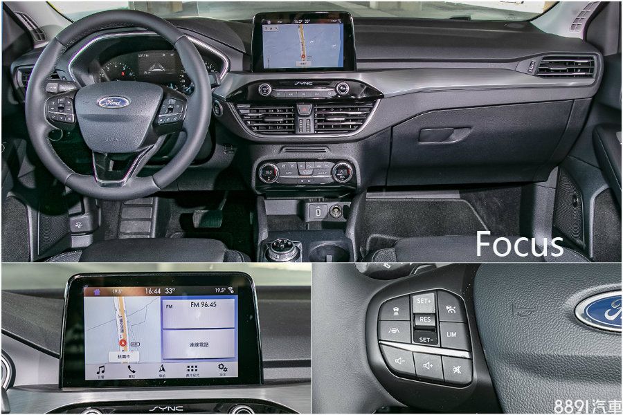 新Focus內裝看來比以往開闊許多,雖然材質方面沒有過於突出,但因為配置旋鈕式排檔座和電子手剎車,讓視覺上比其他對手多了分簡約的科技感。8吋Sync 3系統包含導航、倒車顯影以及Apple CarPlay等功能,加上手機無線充電與B&O音響,配備絕對是此車強項。Co-Pilot360系統是主打項目,完整度凌駕其他對手,ACC可跟車至靜止,且搭配主動車道維持系統,不論塞車或高速路況都非常實用。