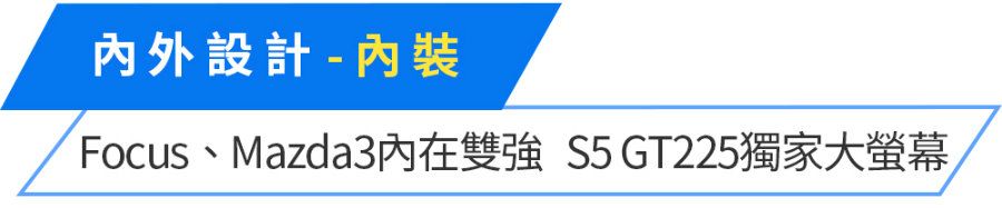 內裝雖然有超大面積的直列式螢幕,還有紅色縫線和碳纖維飾板營造性能味,質感也有合理表現,不過缺點與外觀類似,很容易顯現出世代上的差異。12吋直式觸控螢幕是內裝的主要亮點,畫質和操作上的流暢度沒太大問題,科技感絕對是同級翹楚。S5 GT225並不像其他車款具備ACC或主動煞停等配備,但有行車AR、AR底盤透視和後視Live影像等功能,另外具備智聯網系統,可遠端開啟空調、停車場尋車,還有藉由APP功能讓手機成為車輛鎖匙,兼具科技與便利。