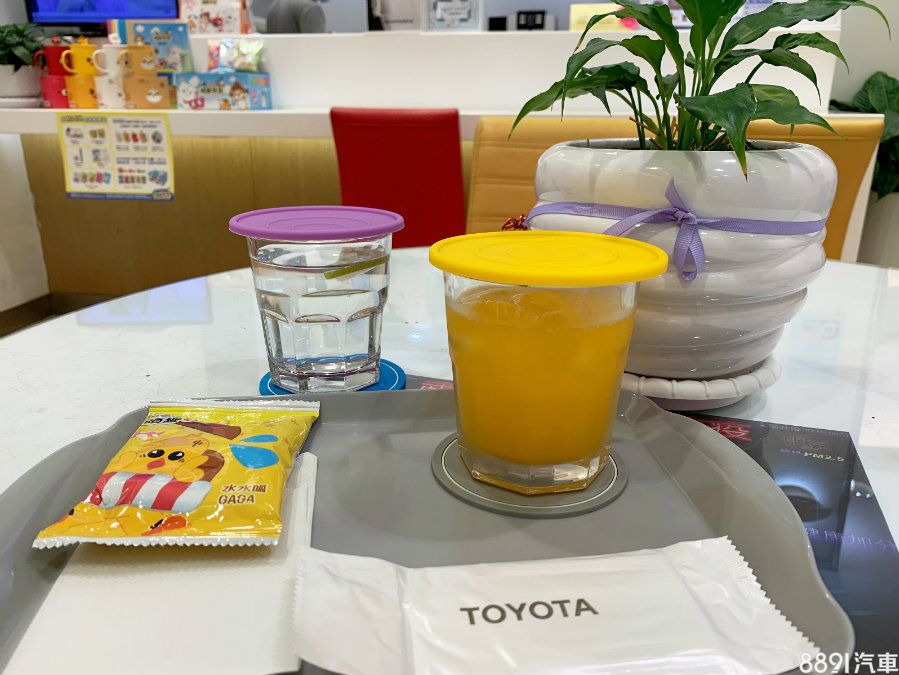 進到貴賓室點了一杯免費飲料等待車保養完成。貴賓室內的電子螢幕可清楚看到目前的保修進度狀態及預計交車的時間,不需離開座位問服務專員進度,還算是方便!這次是車子的滿月檢查,保修時間預定是1小時,實際完工交車時間也是1小時左右,原本擔心周六的尖峰時段應該會延誤,但沒想到還蠻準時的!