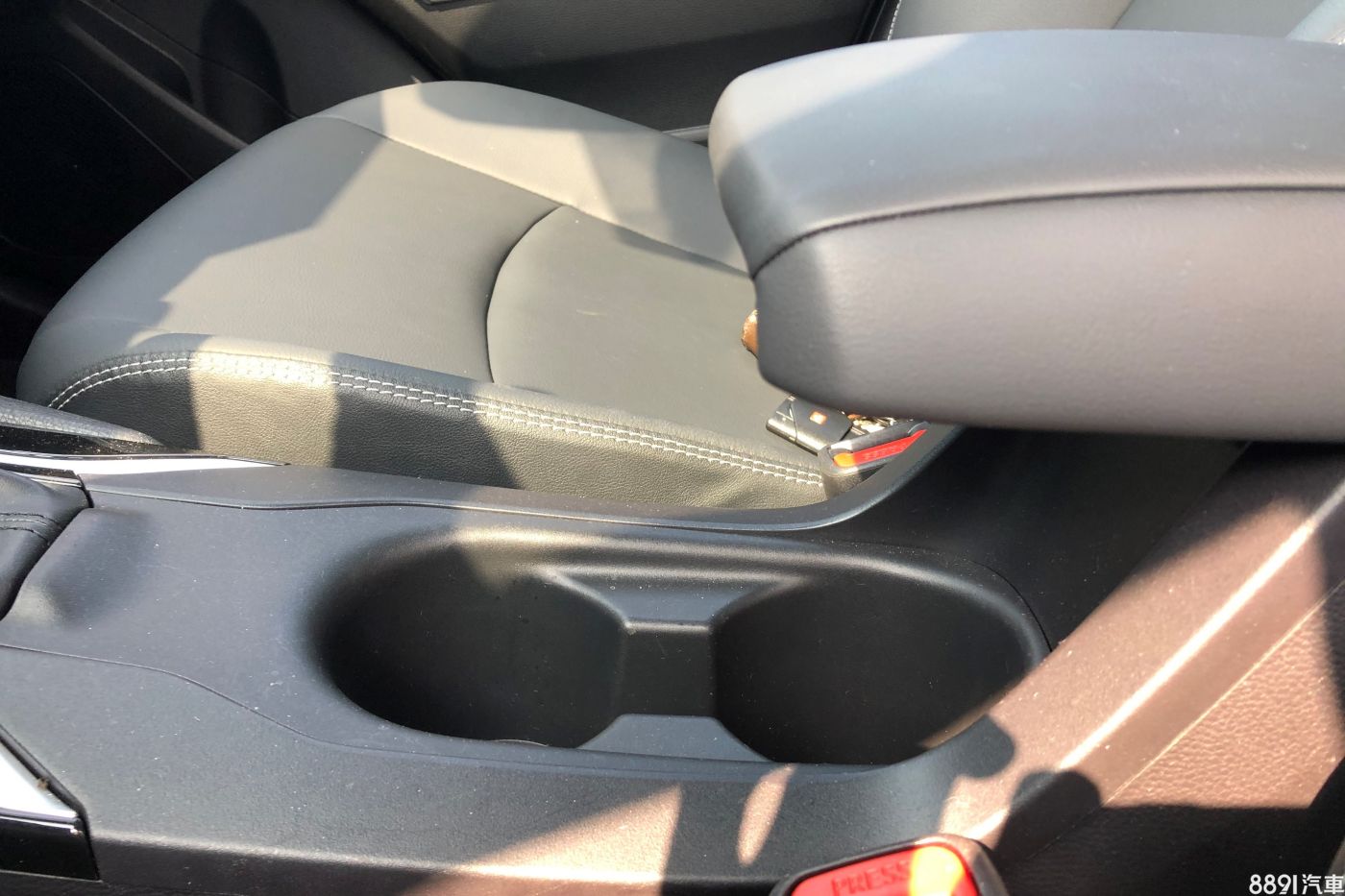 前座中央扶手與置杯架有一個我不太適應的問題,就如同圖片呈現的,將扶手往前推的情況下,右側的置杯架是無法放置寶特瓶,或是手搖飲料這種比較高的物體,會跟扶手前端互相卡到。