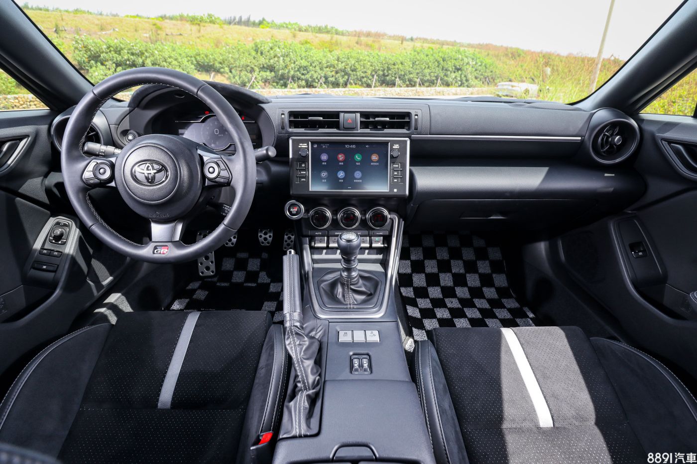 GR86座艙設計以水平線條為主軸,且所有東西能低就低,壓低重心的同時也讓視覺開闊了一點,7吋數位儀表和8吋中控螢幕看得出來是新世代車款,但也延續了旋鈕式空調介面與下方獨立按鍵,傳承前代車型的設計概念。