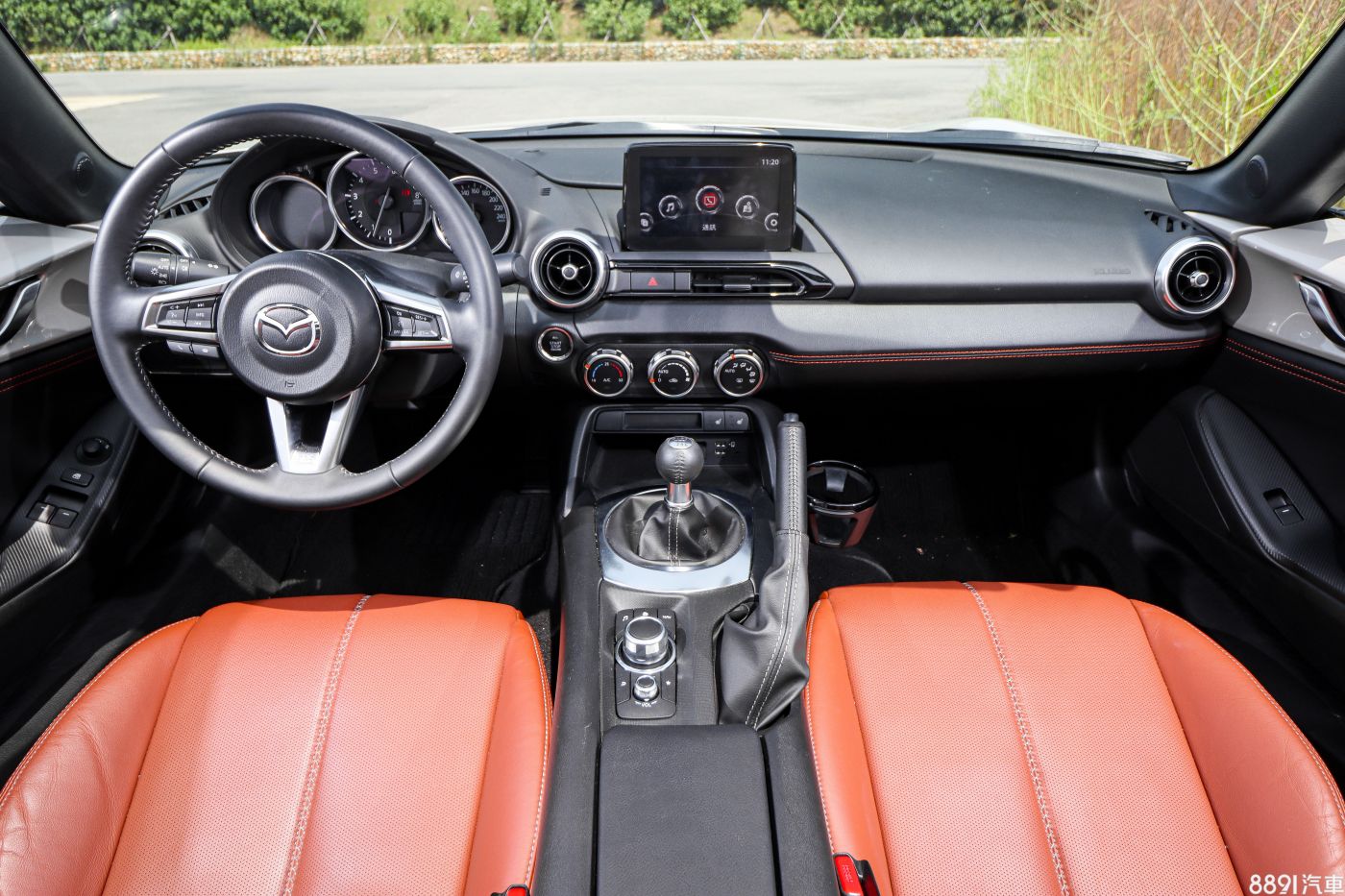 MX-5座艙配置很簡單,但在嬌小身軀下的緊湊空間讓所有東西都離得很近,並不會讓人感到空虛,且用料大多以軟質塑料或皮質,質感並不差,缺點就真的是沒什麼置物空間。