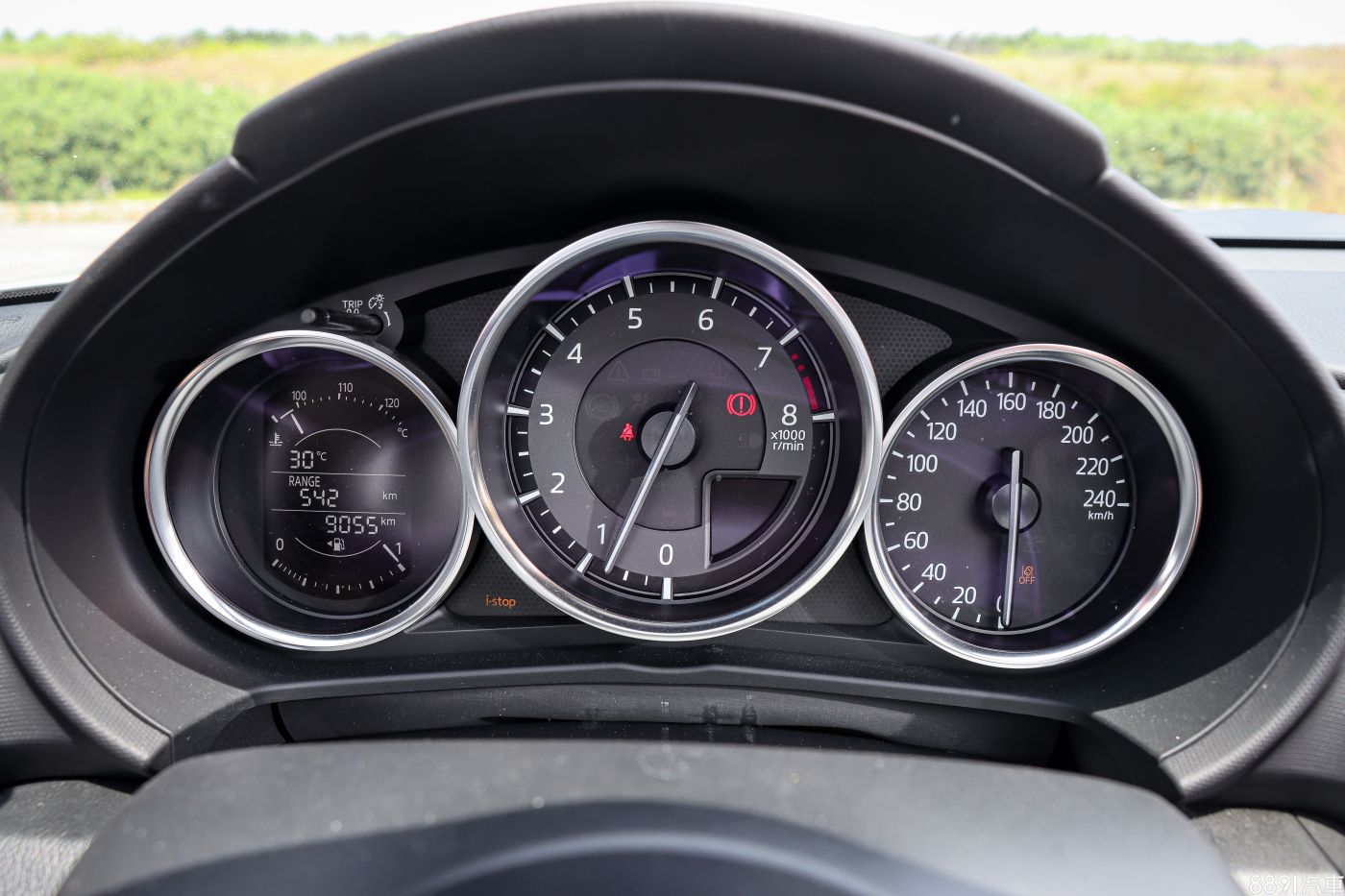相較於GR86的數位儀錶,傳統指針配單色螢幕顯得較不科技化,不過這配置放在MX-5上倒也不沒什麼不行,該有的都有,資訊依舊清楚明瞭,畢竟簡簡單單就是MX-5的設計宗旨。