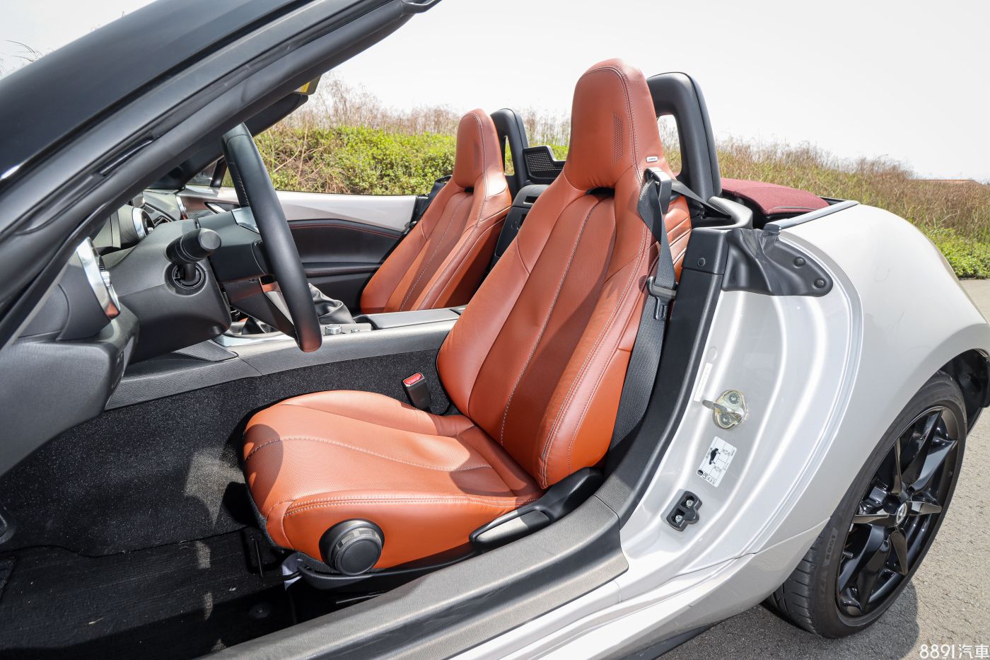 以跑車角度來說,MX-5的座椅顯得不太有運動感,兩側隆起不像GR86那麼明顯,包覆性普通,但原廠稱為「赤陶紅」的Nappa真皮座椅除了顏色順眼,質感也不錯,這是Red Top車型的專屬配備。