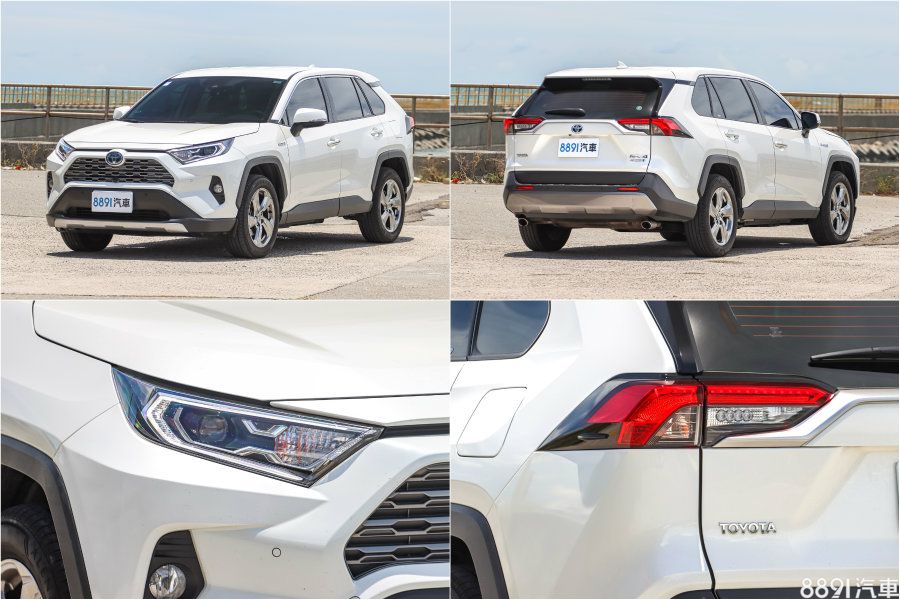 RAV4以剛硬線條貫穿全車,搭配層次分明的車頭,給人耳目一新的「粗獷感」。至於Hybrid分為旗艦、旗艦4WD兩種版本,外觀無太大差異,頂規多了全景天窗、車頂行李架;在燈組配置上,RAV4油電升級LED投射式燈組,附遠光燈自動切換功能,LED尾燈則為全車系標配。