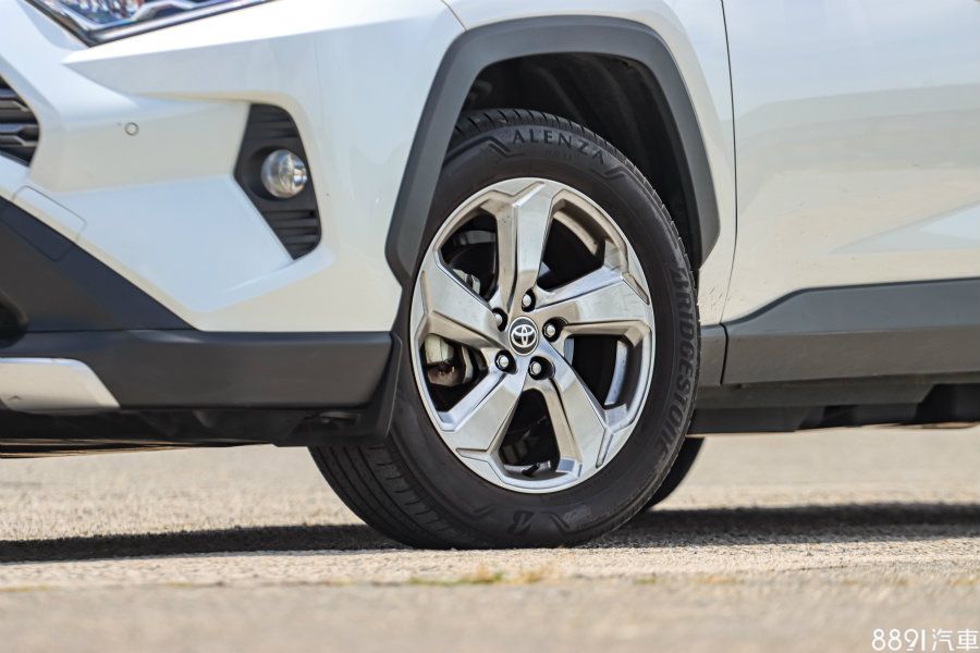 RAV4除汽油入門外皆配置18吋鋁圈,與同樣尺寸的CR-V S相比,五輻造型設計相對簡單,看上去略顯無趣,難以凸顯油電車身份。配胎採普利司通Alenza H/L 33休旅胎系列,規格為225/60R18,主打舒適性與靜肅性。