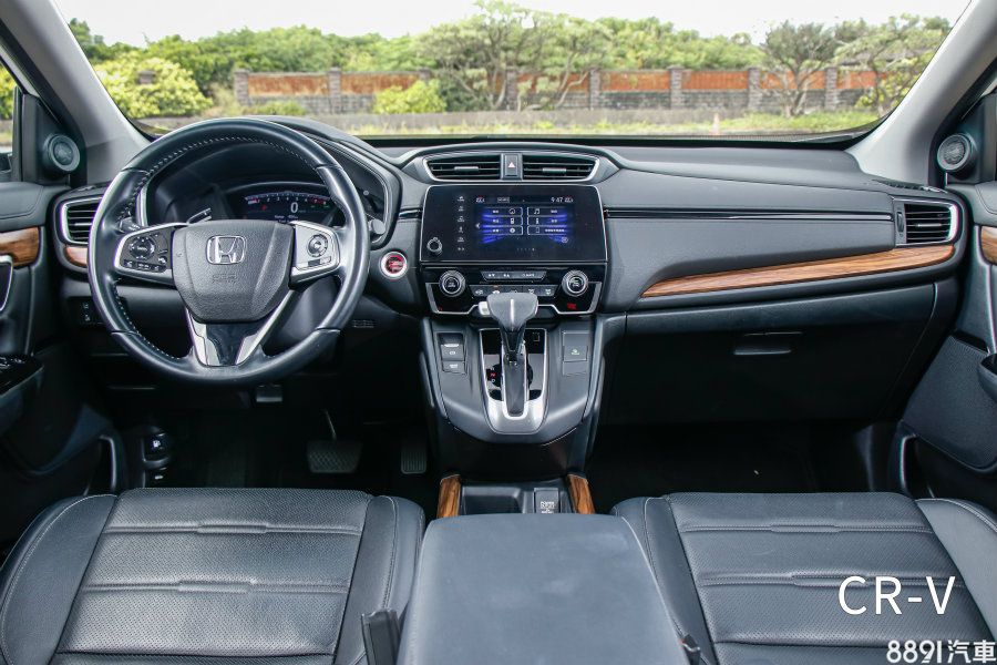 CR-V S搭載環艙木紋飾板,配上大面積皮質包覆與鏡面黑色飾板,質感表現中規中矩。排檔座採懸浮式設計,讓中央鞍座的置物機能更為完整,置物格夠大、空間分層也明確,使用起來相當方便。