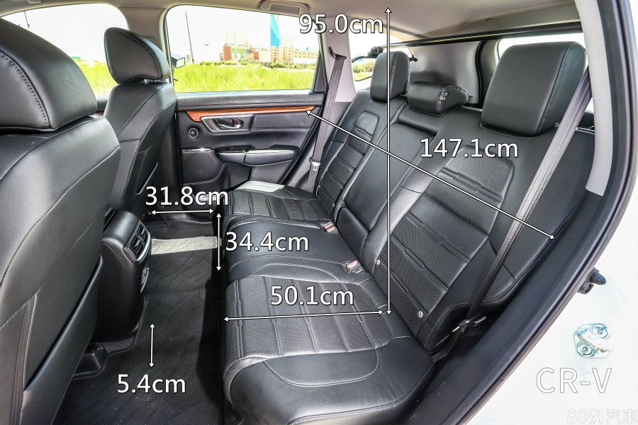 CR-V後排同樣有著偏硬的乘坐感,椅面的曲線幾何較不明顯,舒適度普普,且較低的坐著點使得大腿支撐性略感不足,然而明顯寬闊的肩部及膝部空間表現,是CR-V的一大優勢,即便滿載五人都能為後排乘客保有一定程度的舒適表現。