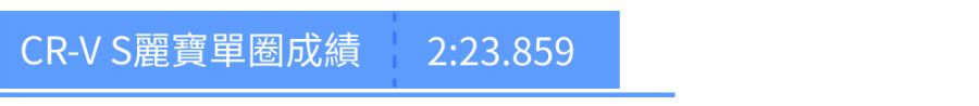 在賽道裡,CVT變速箱手動換檔的反應並不明確,因此以S檔進行單圈計時,此時變速箱反應還算理想,出彎加速時,可感受到變速箱積極的反應,讓引擎動力盡力釋放,不過減速時,若退檔可以更積極一點,能提供更好的引擎煞車,自然對循跡性的牽引力、出彎加速的油門反應都會有幫助。最後CR-V S在麗寶大圈場地(23個彎道)的單圈紀錄是2分23.859,雖然沒有任何熱血激情,但整個過程是愉悅開心的,動力釋放大多是隨傳隨到,底盤在極限狀態下也安穩,整體表現成熟均衡。