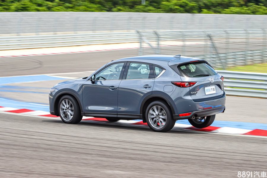 由於CX-5 2.0的動力實在不大,在麗寶賽道裡甚至可以說有點過小,因此很多時候都可以全油門應對,同時CX-5 2.0懸吊阻尼也比CR-V、RAV4 Hybrid來得硬一些,配胎25/55R19的Toyo Proxes R46A也有最好的運動性,因此CX-5 2.0底盤運動性是三車最好的,甚至有底盤明顯強過動力的感覺。