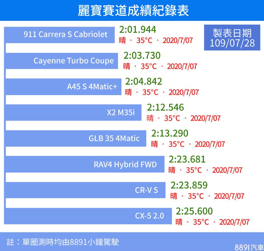 最後CX-5 2.0在麗寶大圈場地(23個彎道)的單圈紀錄是2分25.6,比CR-V、RAV4 Hybrid慢了約兩秒,主要原因是動力差距所造成,但想一下動力差距,本車0~100km/h實測比最快的RAV4 Hybrid慢了約2.2秒,這樣的單圈成績也是夠水準了!