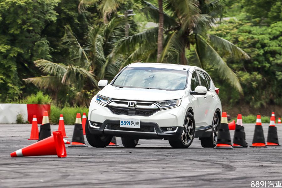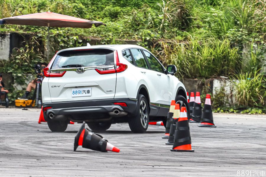 進入陣仗後第一個向左閃避,是最激烈、最考驗轉向性的地方,CR-V轉向算是聽話受控,但伴隨一點轉向不足,而進入第二車道之後,車身有點外拋,與外側錐桶的距離變近,卻並沒有碰倒錐桶,在動態穩定系統的協助下,順利的完成閃避,整個過程裡,動態穩定系統作動順暢,藉由煞車拉回車身動態時,並沒有讓人感到突兀。