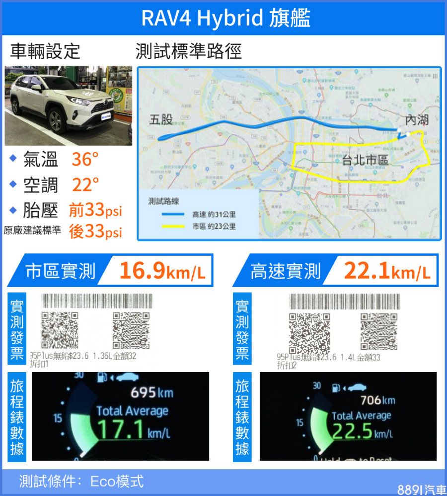 然而市區路段則適逢下班車潮湧現,路況稍有壅塞,純燃油的CX-5及CR-V在市區油耗表現均顯得吃虧,即便CR-V憑著節能模式輔助,還能小勝CX-5些許,但雙雙僅能眼睜睜地看著自己被獨具電能輔助的RAV4,以16.9km/L的成績完全海放!