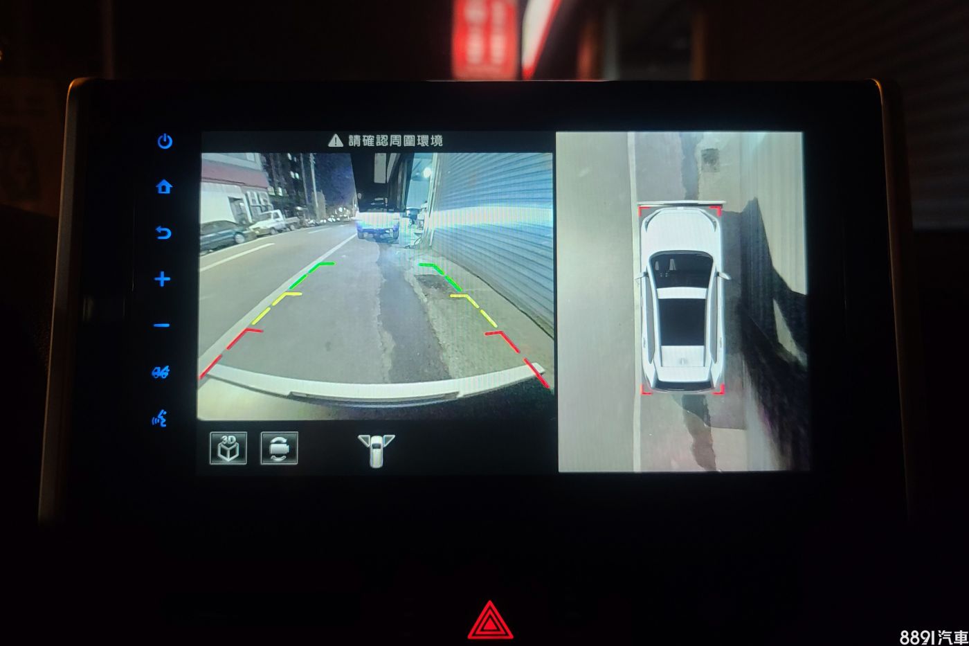 四、現在很多新車都有配備環景系統了,不過我的車並無法體會到,有倒車顯影就已經很棒了,哪還敢奢求。而實際試用後,覺得這功能真的很實用,抓角度也很方便,停車也好用。
