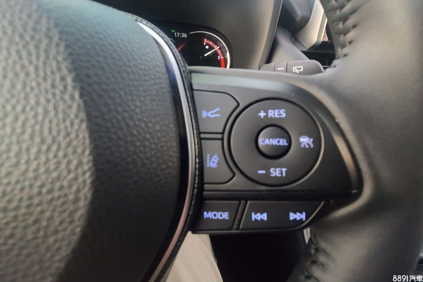 二、再來看到方向盤上的多功能按鍵,最有興趣的是當屬全速域跟車以及車道維持輔助系統,這是我原本車子所沒有的功能。實際體驗到這功能的實用性,很替開車的人著想,全速域跟車適合在高速道路上使用,減輕駕駛勞累感,而車道維持系統則在一般道路及高速道路都適合使用,RAV4試用的後半期間,幾乎都開著這功能。