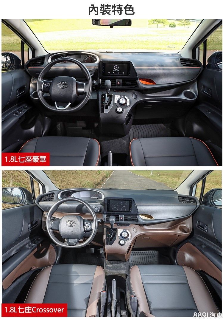 七人座Crossover與豪華+售價同為82.9萬,主打不同客群,配備基本對標五人座Crossover車型,擁有專屬的外觀套件與懸吊配置。不過老問題還是皮椅鋪面從豪華皮質改成一般皮革,並取消雙側電動滑門、定速、BSM、RCTA等配備,必須透過要價5萬的七人座專屬選配件獲得,實用性與安全都小有扣分,因此名列Sienta七人座最不推薦的車型。