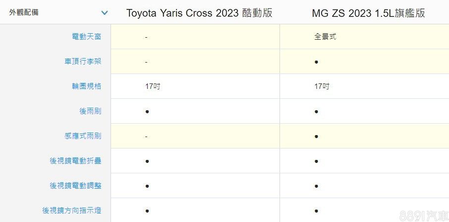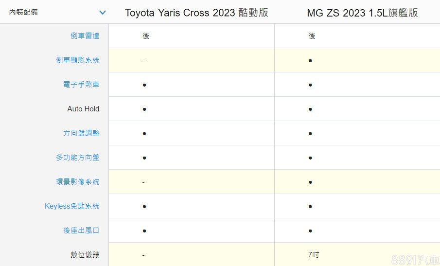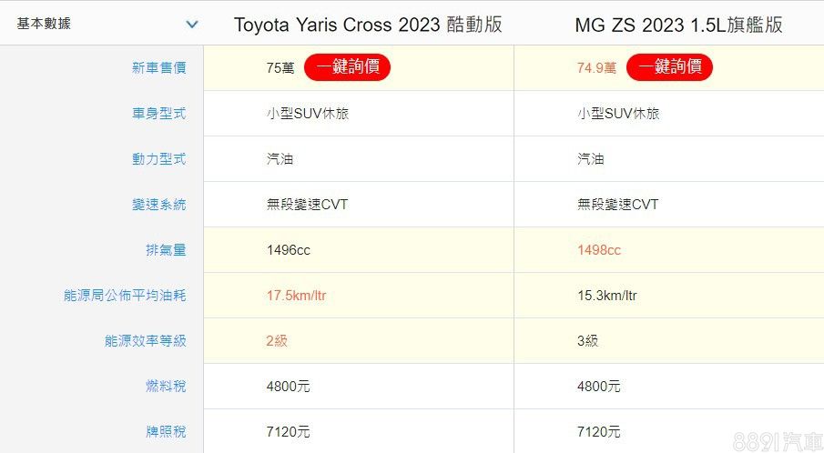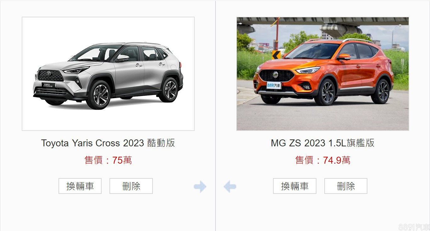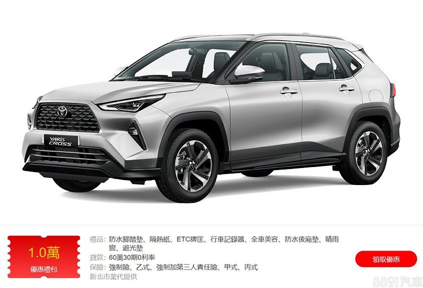 目前在8891的一鍵詢價功能中,MG ZS尚未有與我們配合的專屬優惠,而Yaris Cross正值新車上市期,可提供的優惠額度也不高,未來若有相關服務,我們也會即時上線。