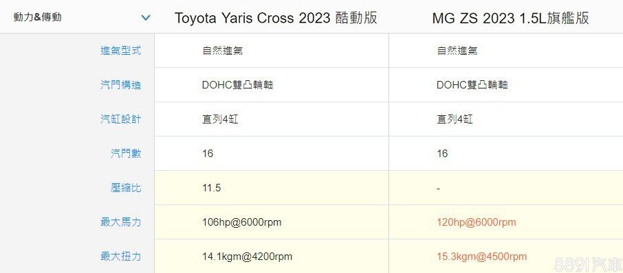 兩台CUV均採四缸NA汽油引擎+CVT變速箱的組合,是市場上同級小休旅常見的配置,排氣量雖同為1.5升,但數據上無論馬力還是扭力都是由ZS勝出,而後續8891也會針對兩車進行實測,0~100km/h加速表現誰優誰劣,屆時就能揭曉!