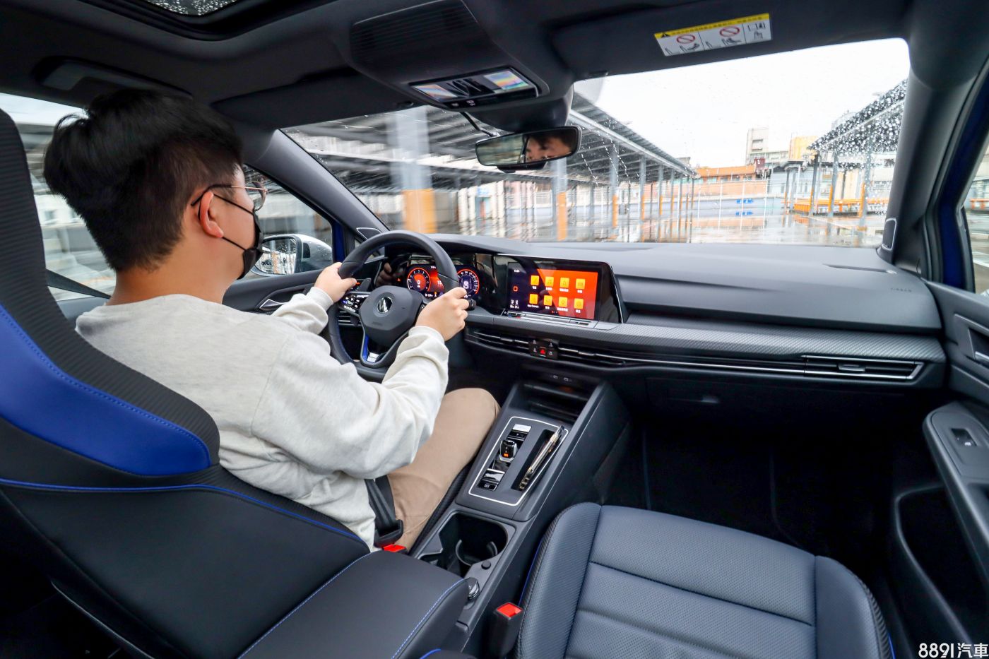 個人覺得內裝最有牌面的當屬R專屬跑車型座椅,採用Nappa真皮甫以碳纖維紋妝點,不僅椅面觸感柔軟,實際入座,身形相當服貼且泡棉軟硬適中,激烈操駕時確實有種「被包緊緊」的感覺。