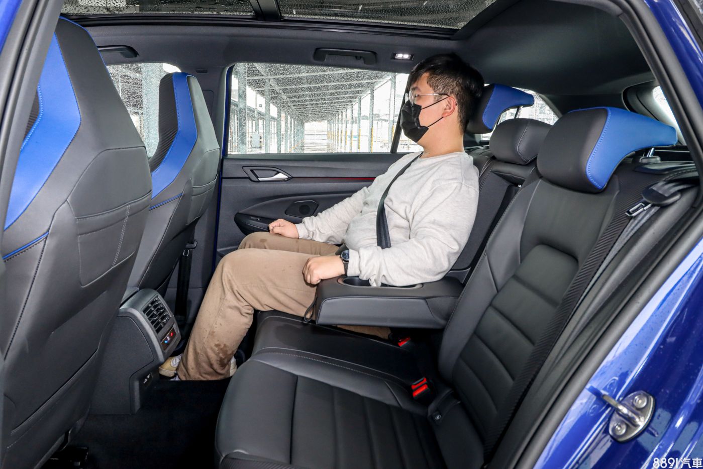 原以為後座空間會因為前座配置跑車型座椅而有壓縮,不過實際入座後,發現並沒有太大差異,以筆者約172cm的身高做示範,頭部與膝部都算留有餘裕,標配的全景式電動玻璃天窗亦能帶來開闊視野,後排座椅的包覆性自然不能與前座相比,但泡棉設定一致,久坐也不顯疲憊。