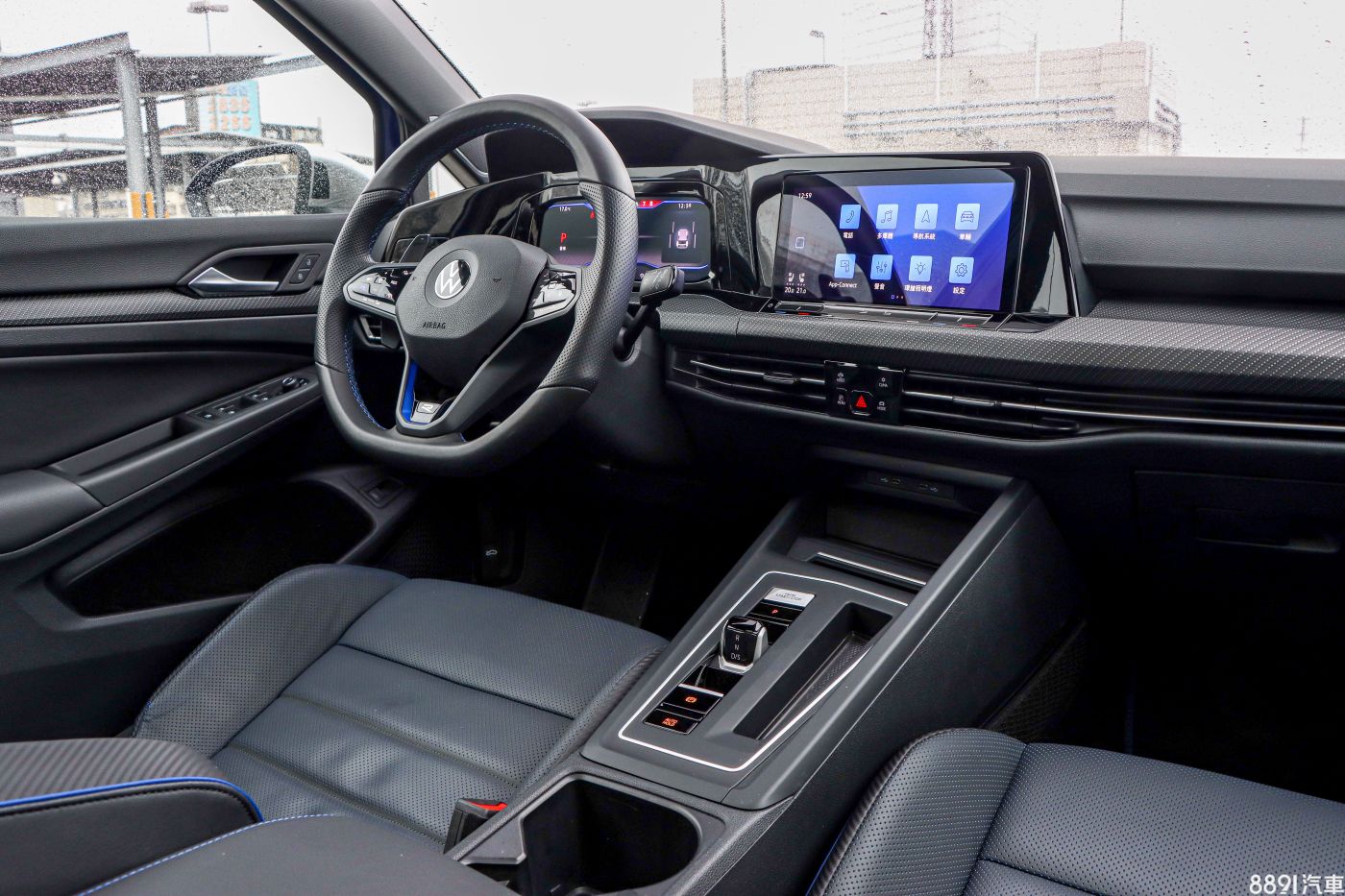 座艙維持新Golf的格局,採用10.25吋數位儀錶搭配10吋MIB 3多媒體系統,支援原廠中文導航、無線Apple CarPlay、無線Android Auto、手機無線充電等功能,並透過R專屬方向盤/座椅、環繞中控台、車門板的碳纖維紋飾板,以及金屬煞車/油門踏板強化熱血氛圍,搭配30色氣氛燈切到紅光更有味道,不過個人認為碳纖維紋飾板的紋路做的有些粗糙,視覺上稍嫌美中不足。