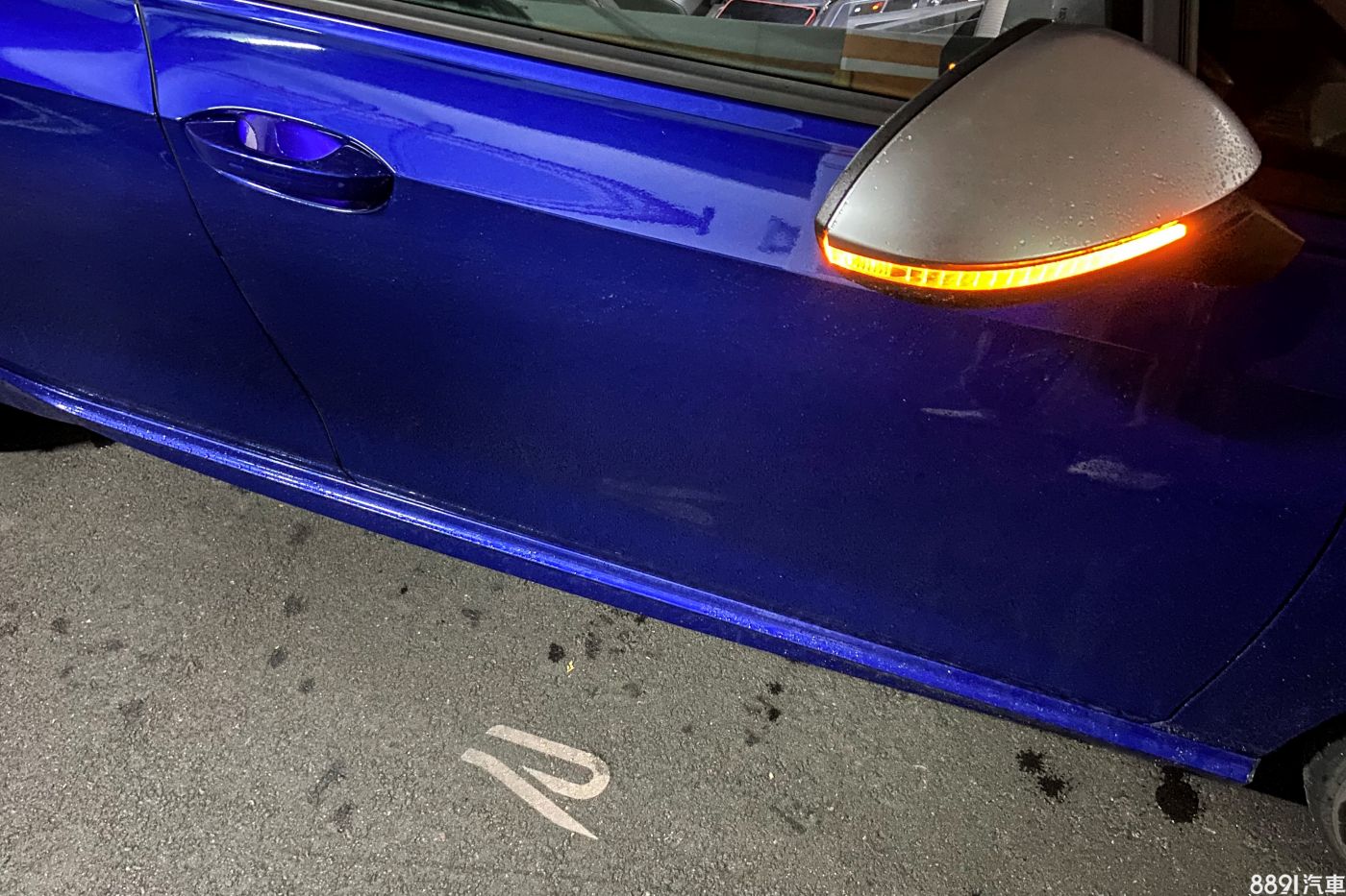 或許是因為在光源並不充足的地下室交車,當天初見Golf R Variant第一印象並不是被外表所吸引,取而代之的反倒是映照在地上的R專屬迎賓燈,光型簡單卻有質感。