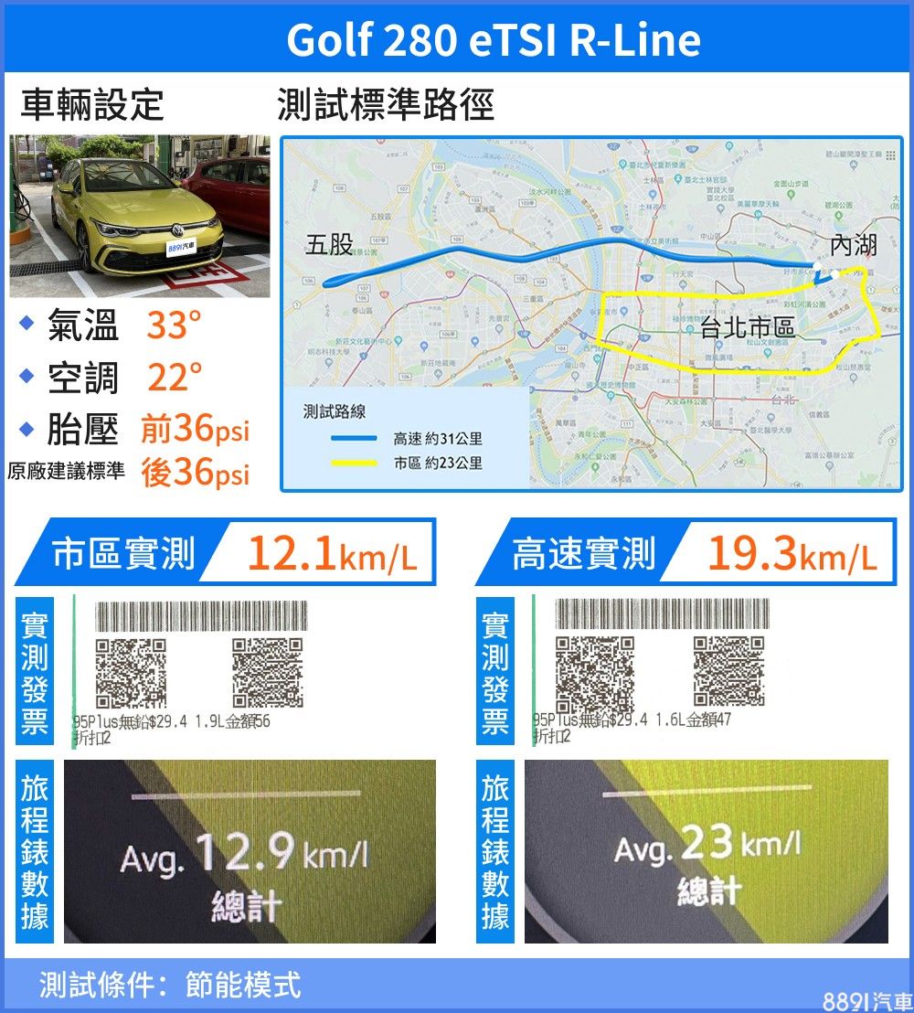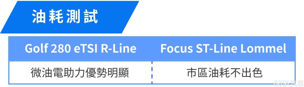 不論市區或高速油耗測試都是由Golf勝出,兩車都擁有節能模式、怠速熄火、汽缸休止等配備,但多了48V微油電系統助力的Golf顯然更有優勢,由於引擎低負載時多了電動馬達輔助,更易維持二汽缸模式的運作時間,行駛中鬆開油門,也很容易可以進入空檔滑行,對於節能表現確實幫助頗大。