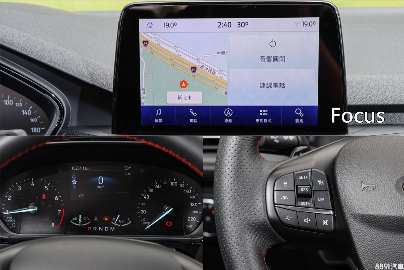 8吋觸控螢幕帶有導航系統,也支援Apple CarPlay、Android Auto手機連結,實用性上不遜於Golf,不過畫質、操作流暢度Golf相對出色。Focus是傳統指針儀錶搭配中央4.2吋資訊幕,基本行車訊息、音訊、ACC狀態皆可檢視,輔以方向盤左側快捷鍵設定,使用便利度無虞。
