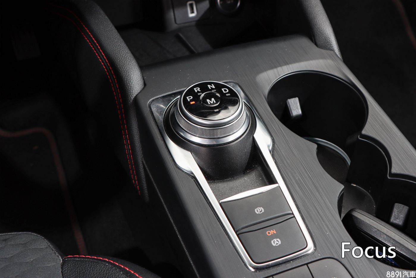Focus排檔座設定也夠簡潔,採用旋鈕式電子排檔,駕駛可以按下M進入手排模式,也能像Golf一樣,直接用方向盤換檔撥片進入手排。周圍功能鍵除電子手煞車、Auto Hold外,駕駛模式選單也由此區操作。