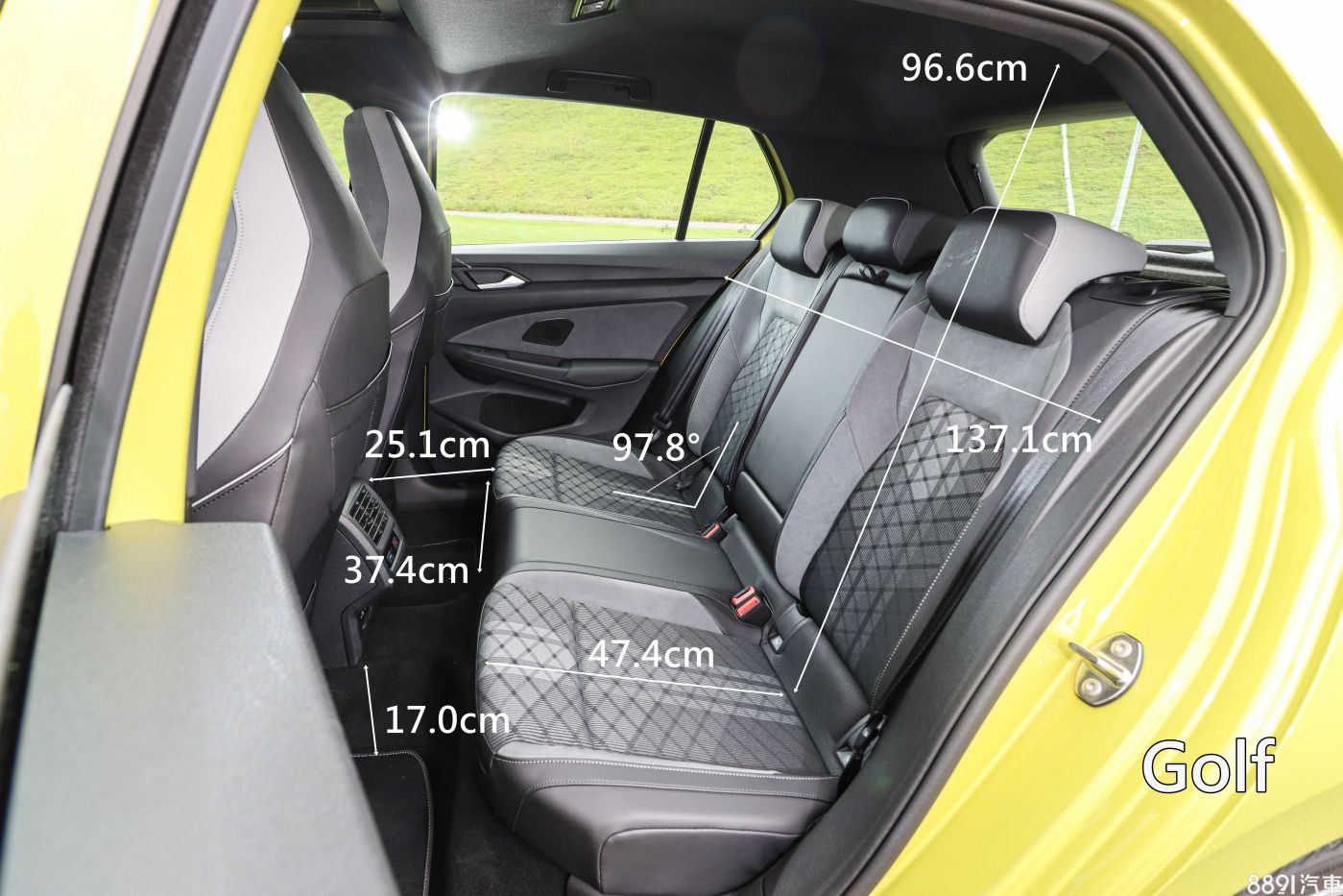 Golf後座膝部與車室寬度都略遜於Focus,加上中央地板隆起明顯,三人乘坐時略顯侷促,不過座椅角度適中且椅面較長,支撐性與包覆度都不錯,2人入座時就還蠻舒服的。