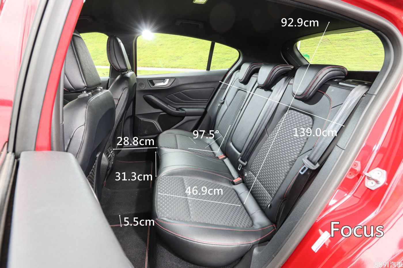 Focus後座寬敞採光佳,且中央底板較平整,就算三人入座不至於太過壅擠;由於座椅泡棉質地較硬、椅背角度較挺,久坐時比較容易產生疲憊感。