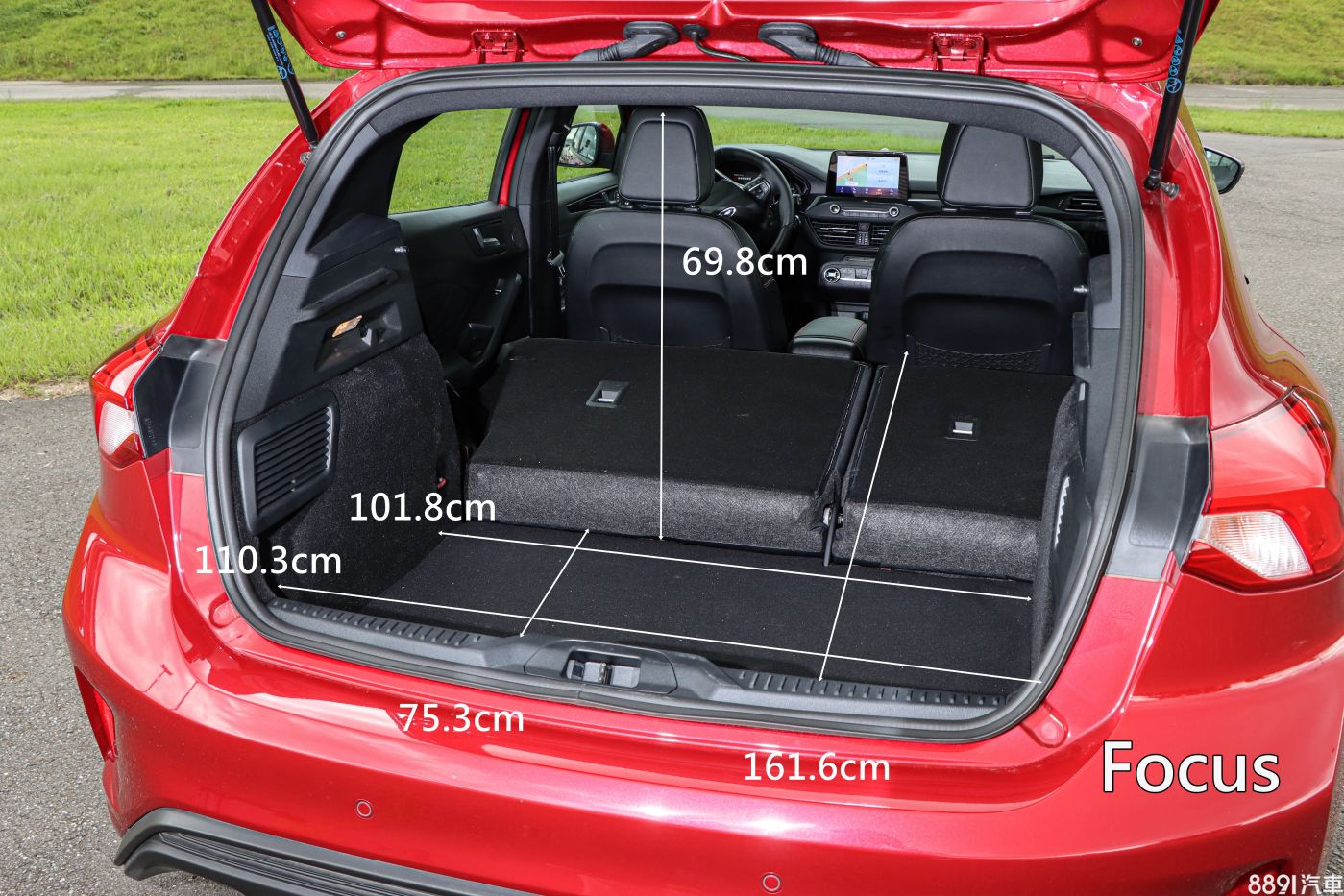 受惠於車身尺碼較長,Focus行李廂無論倒平前後,縱深表現都較佳,有利於擺放長形物體,唯一小缺憾就是少了平整化底板,若放大型物品移動時稍有不便。Golf雖然在數據上占不到便宜,但平整性佳、多了中央通道的設計,可直接從後座取物,機能性略勝。