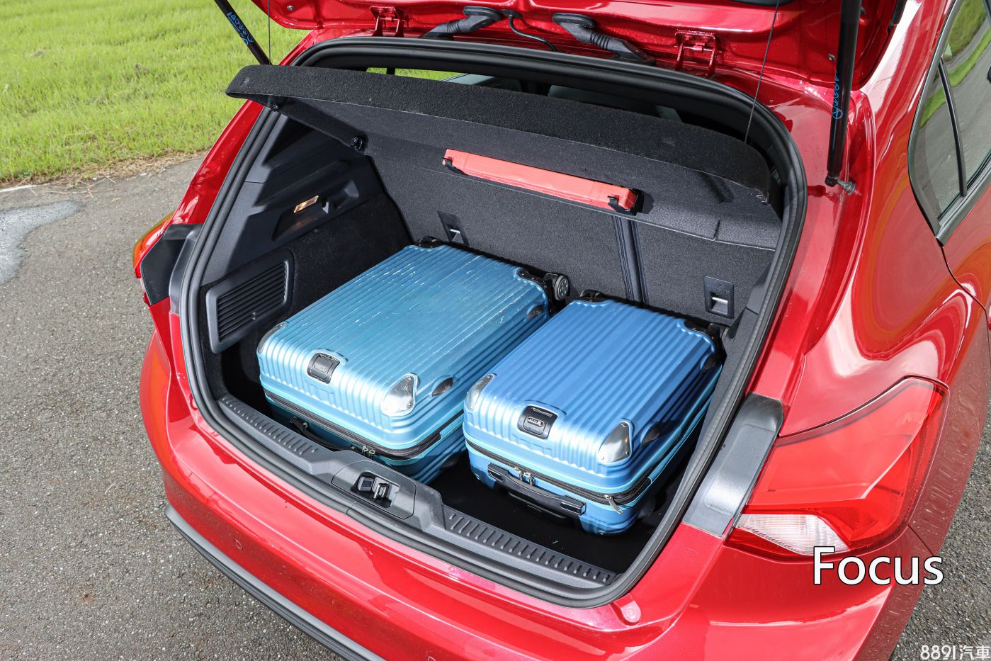 縱深的差異透過20、26吋行李箱示範後一目瞭然,兩車皆可垂直擺放26吋行李箱,也都能順利闔上尾門,不過如圖所見Golf已經探底,而Focus仍留有餘裕,空間運用可更靈活。