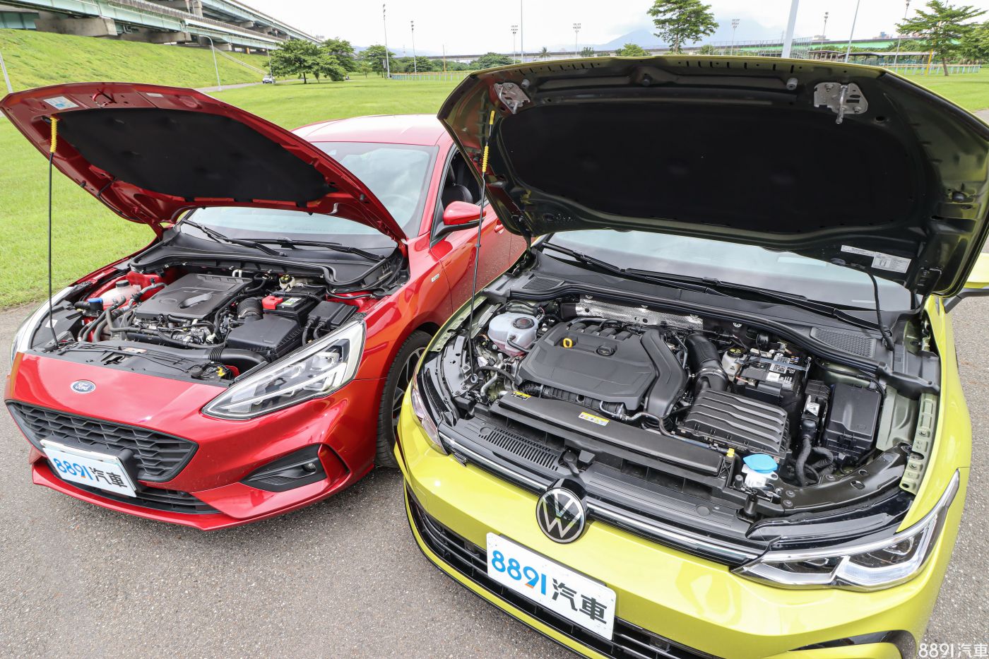 兩車動力都是1.5升汽油渦輪引擎,差別在於Focus為三缸、Golf則為四缸機體,不過Focus三缸引擎調校得宜,兩者運轉的精緻度都有一定水準。Focus輸出為182hp/24.5kgm搭配8速手自排,而Golf則是150hp/25.5kgm搭配7速雙離合器自手排,另有48V微油電可額外助力12hp/5.1kgm,帳面數據上Focus領先32hp較為明顯,扭力則不相上下,變速箱也是截然不同,實測加速表現讓人好奇。