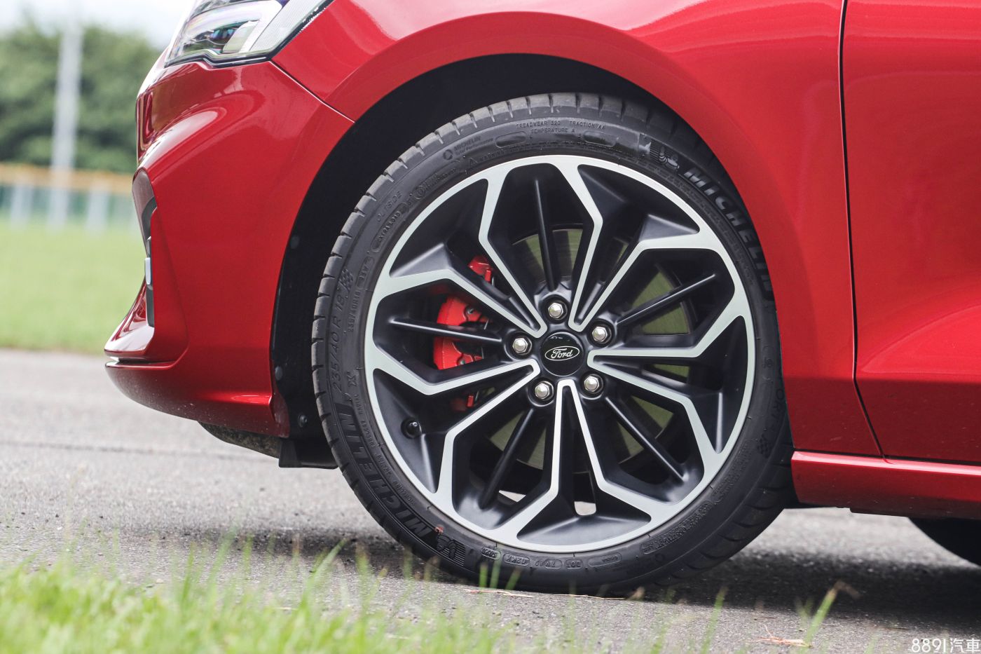 18吋鋁圈的造型設計感強烈,配胎為235/40R18的米其林PS4,和此車運動化設定有理想的搭配性,此外,Lommel版的煞車系統也經過升級,採用紅色塗裝卡鉗,前碟盤尺碼也比一般ST-Line更大。