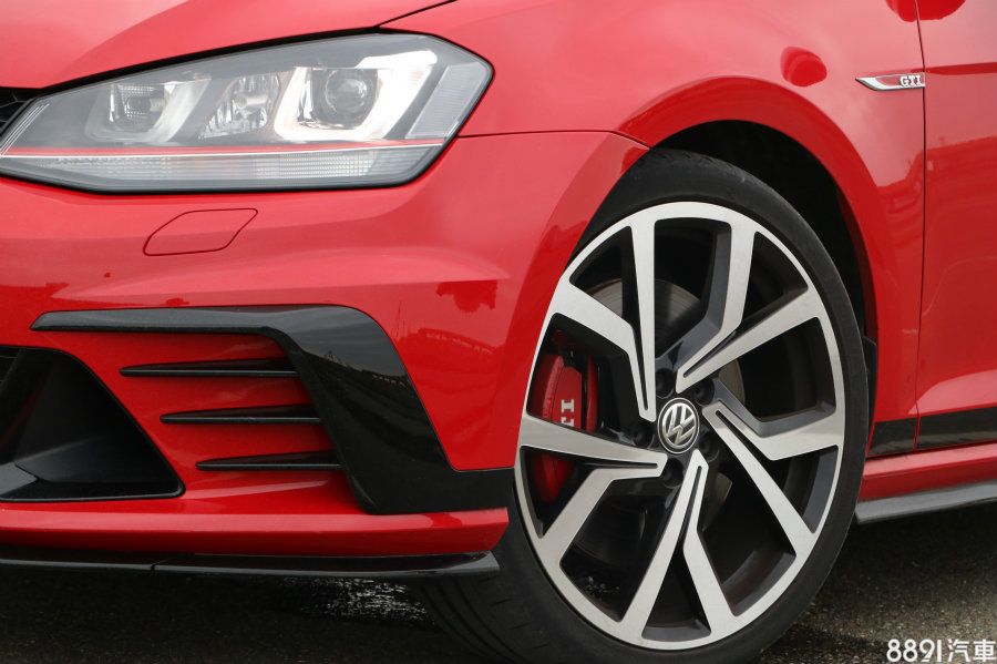 鋁圈換上19吋專屬式樣,並搭配225/35R19的米其林Pilot Super Sport跑胎,內部剎車比起一般版本的GTI車型,除了在制動卡鉗加上紅色塗裝的GTI飾蓋,碟盤尺碼則採用更大的前340mm、後310mm規格。