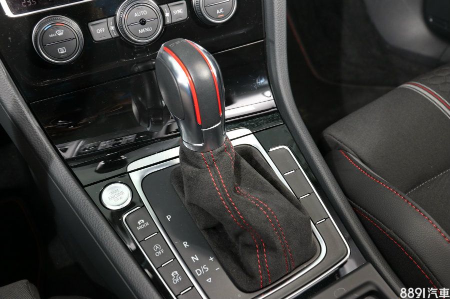 紅色飾條排檔頭與麂皮排檔座均為GTI Clubsport專屬配置,視覺與觸感都相當討喜,左側按鍵由上而下分別是引擎啟動鈕、DCC型車模式切換、怠速熄火功能以及動態穩定系統開關。