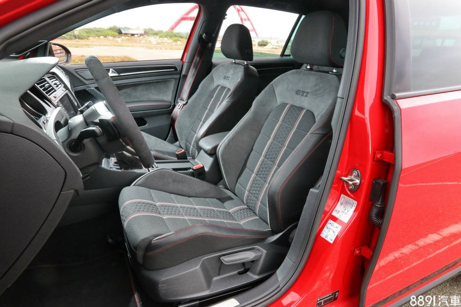 國內引進的版本並未配置更具競技味的賽車桶椅(國外可選配),但包覆性與乘坐感已具備相當水準,而GTI招牌的格紋織布也改為條紋樣式,並一樣在周邊搭配麂皮面料,以增進止滑表現,此外,安全帶也多了兩道紅色飾條點綴,有畫龍點睛的效果。