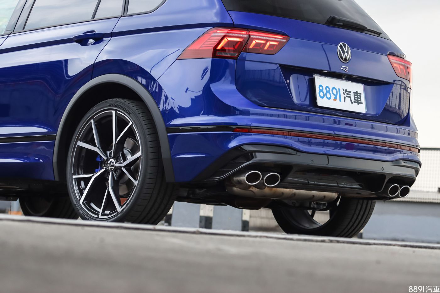 Tiguan R輪胎規格為255/35R21,胎寬跟次一級的R Line Performance車型相同,只是鋁圈從20吋加大到21吋,扁平比因此由40%降為35%,配胎Hankook S1 evo3 SUV的側向抓地力不錯,可以盡情驅策320hp/42.8kgm動力,不過胎壁支撐性倒是有提升空間,賽道測試完畢後,胎壁明顯有折損,但測試過程倒是沒有感受到影響車輛循跡性、安穩度。