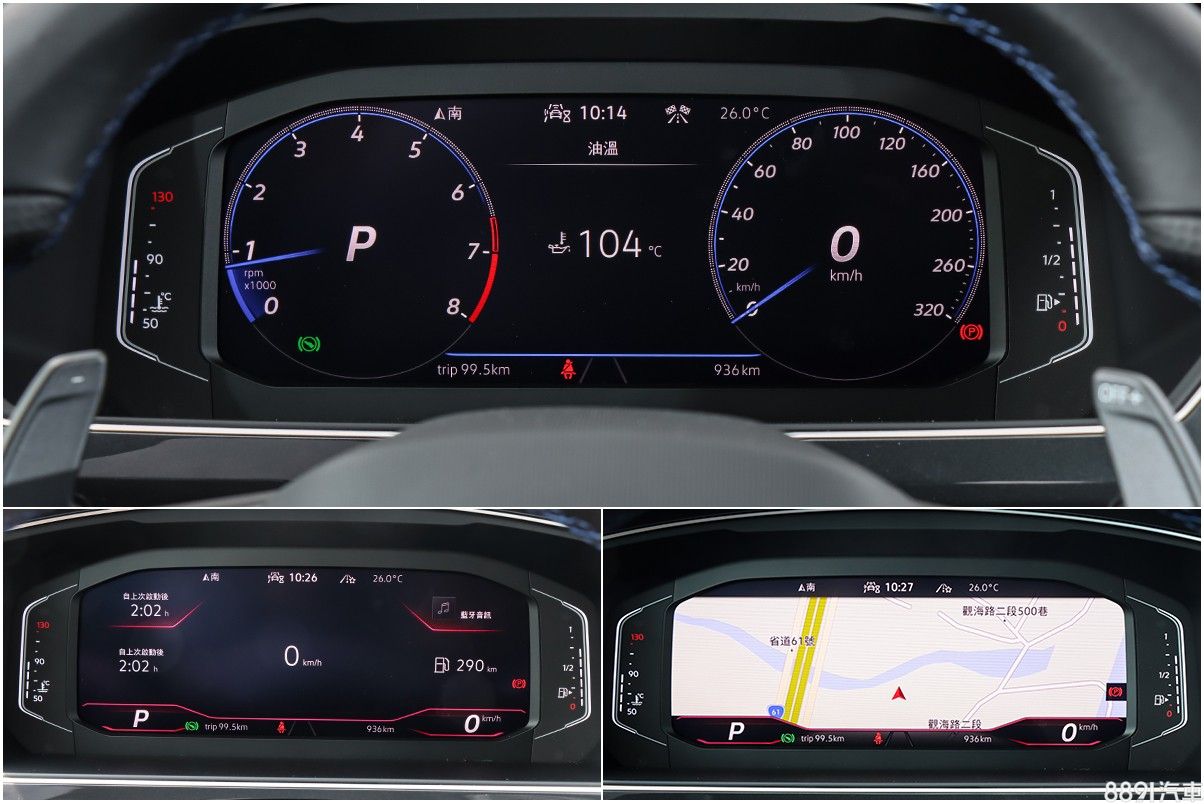 10.25吋數位儀錶可切換三種模式,無論清晰度、質感、資訊豐富度皆出色,也能從選單裡叫出賽道計時系統。儀錶顏色部分可隨駕駛模式變化,也能配合30色氣氛燈改變。