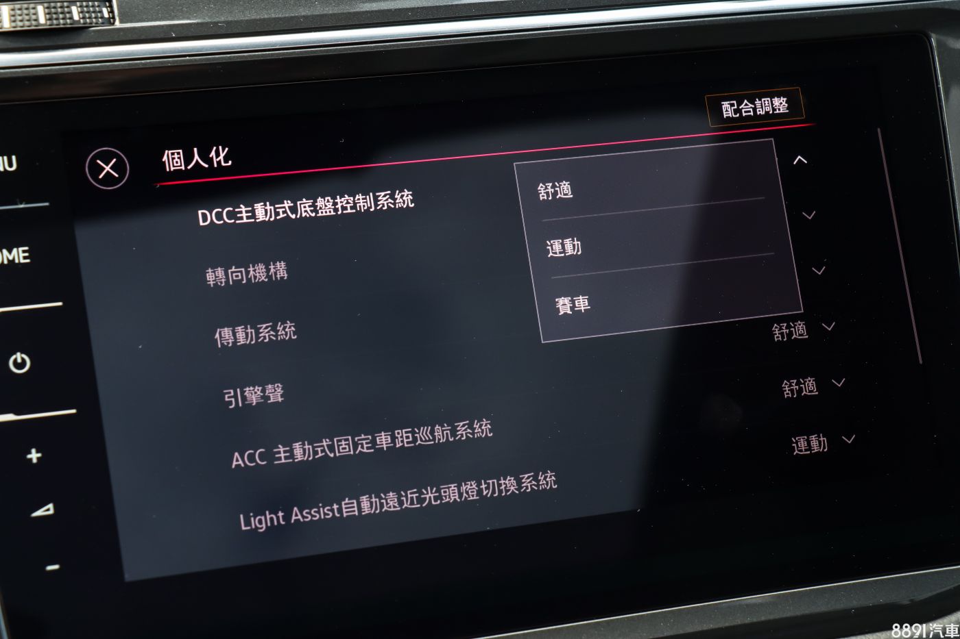 在三種模式對照下,可明顯看出阻尼越強、衝擊感越明顯,對應實際上路行駛時的路感差異也是如此,想舒服的開就選Comfort,想要轉向俐落、路感鮮明就選Race。